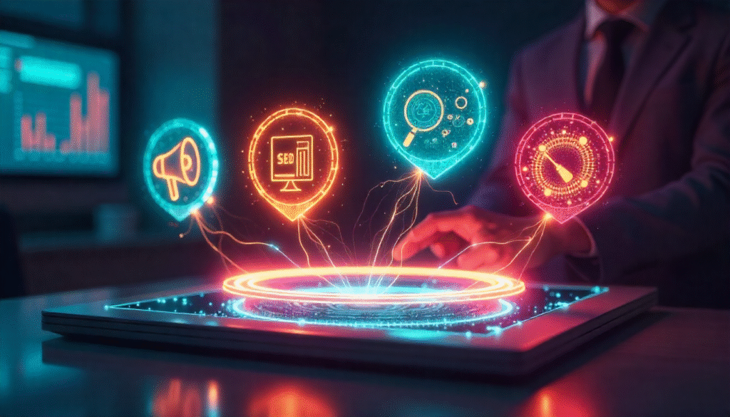 - اجمع بين الإعلانات الممولة + SEO + السوشيال + البريد الإلكتروني في خطة واحدة.